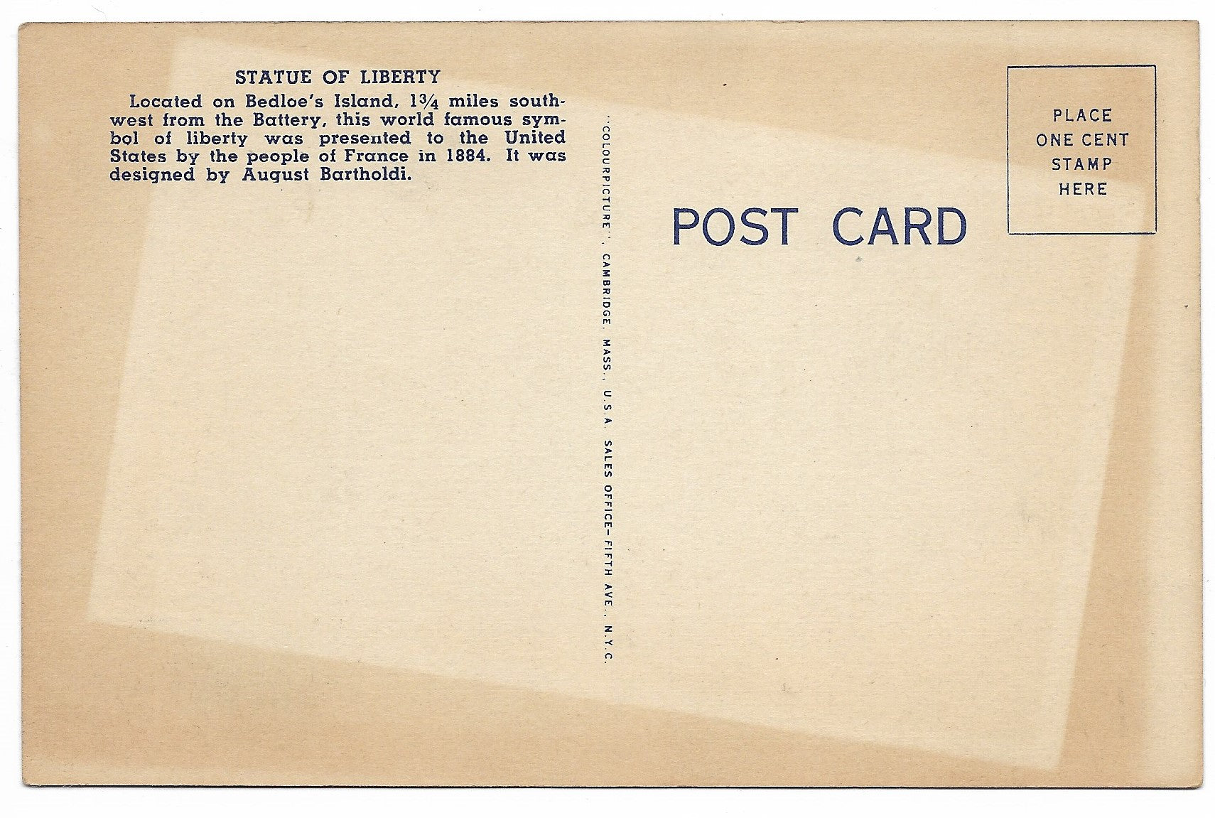 Statue of Liberty - Located on Bedloe's Island, 1-3/4 miles southwest from the Battery, this world famous symbol of liberty was presented to the United States by the people of France in 1884. It was designed by August Bartholdi.